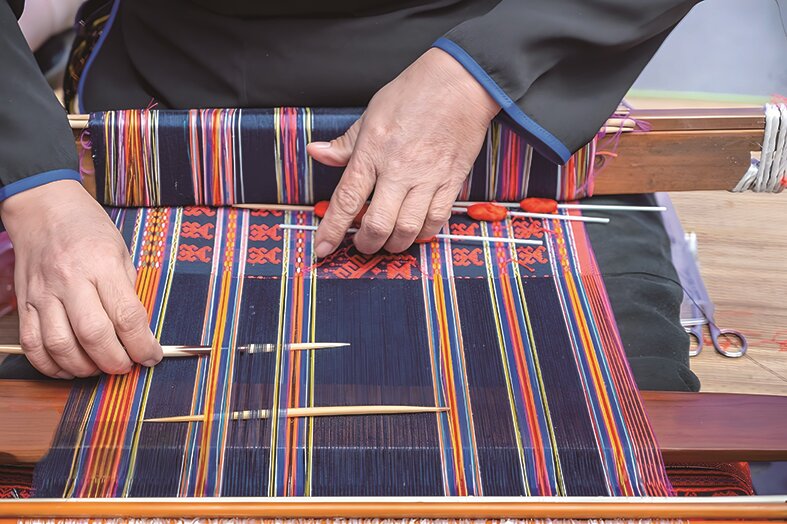 The Li people also have other ways to pass on this ancient weaving2 skill. In Wuzhishan, there are 22 learning centres with more than 3,500 people skilled in Li brocade weaving.